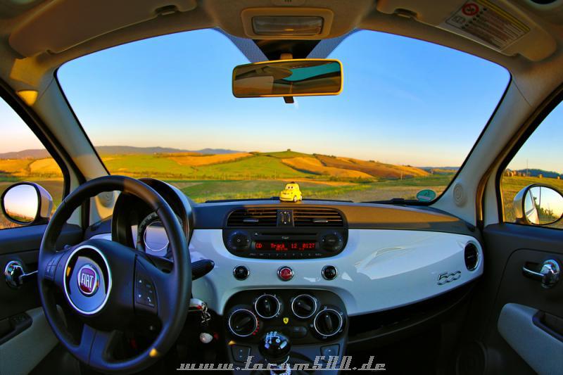 Fietje 500C 1.2 8V Lounge in Pompei Grau Metallic mit rotem Dach, Elfenbein-Ambiente - klein aber fein - und Interscope - und mein!