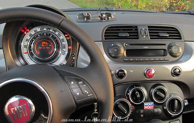 Also am Spiegel hängt Columbo und unter der 500 steht "powered by Abarth" (Logo):