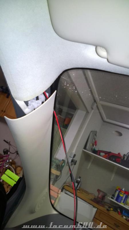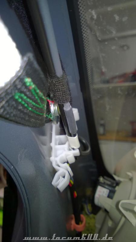Was mich allerdings gewundert hat, ich habe in der A-Säule ein abgeschnittenes Kabel (könnte ein Koax sein) vorgefunden, das an einen Kunststoffstab befestigt war:
